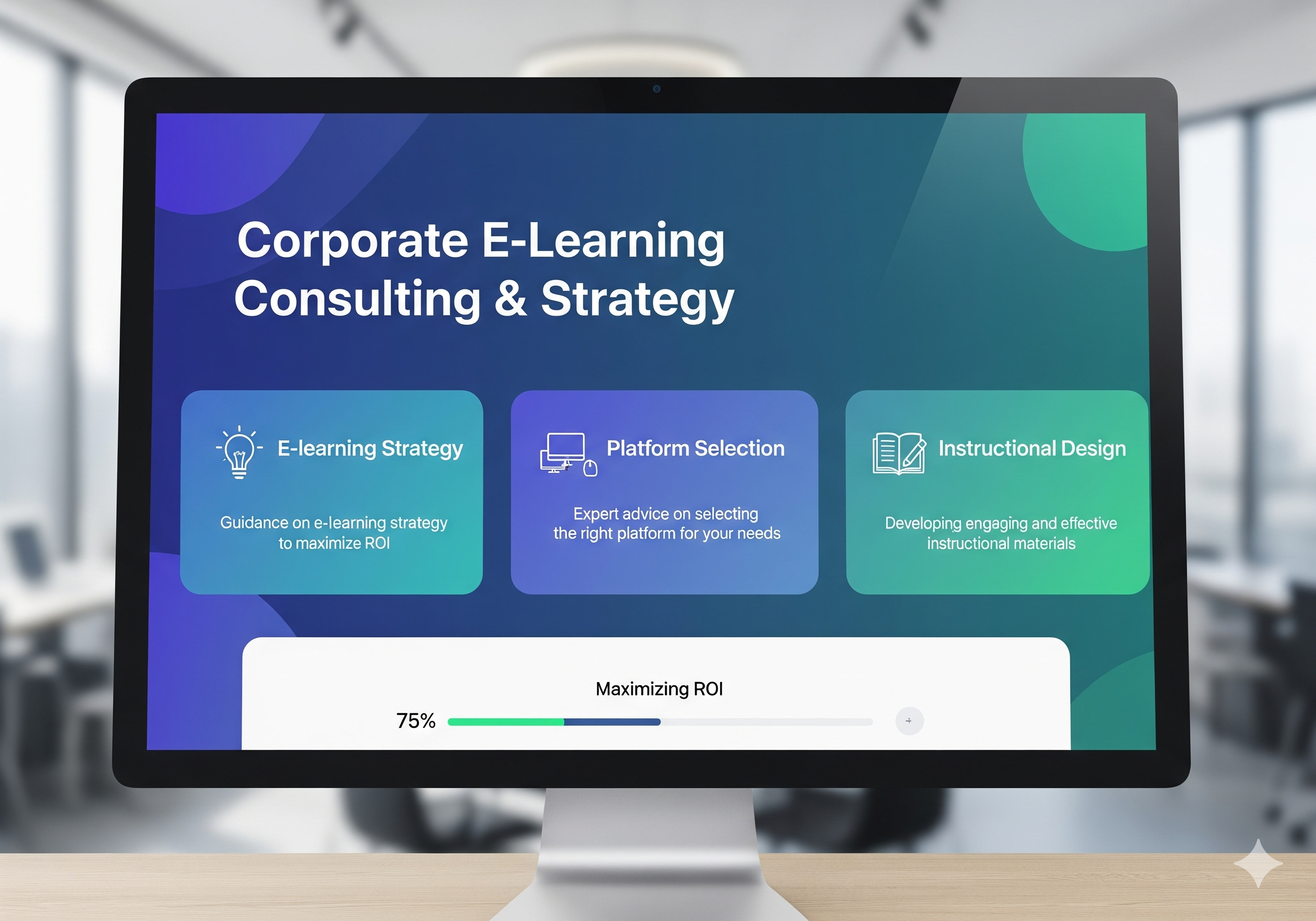 Guidance on e-learning strategy, platform selection, and instructional design to maximize ROI.